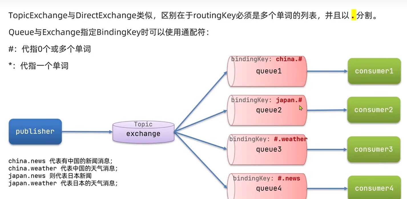 rabbitmqctl set_policy:固定写法ha-two:策略名称,自定义"^two\.":匹配队列的正则表达式,符合命名规则的队列才生效,这里是任何以two.开头的队列名称'{"ha-mode":"exactly","ha-params":2,"ha-sync-mode":"automatic"}': 策略内容"ha-mode":"exactly":策略模式,此处是exactly模式,指定副本数量"ha-params":2:策略参数,这里是2,就是副本数量为2,1主1镜像"ha-sync-mode":"automatic":同步策略,默认是manual,即新加入的镜像节点不会同步旧的消息。如果设置为automatic,则新加入的镜像节点会把主节点中所有消息都同步,会带来额外的网络开销